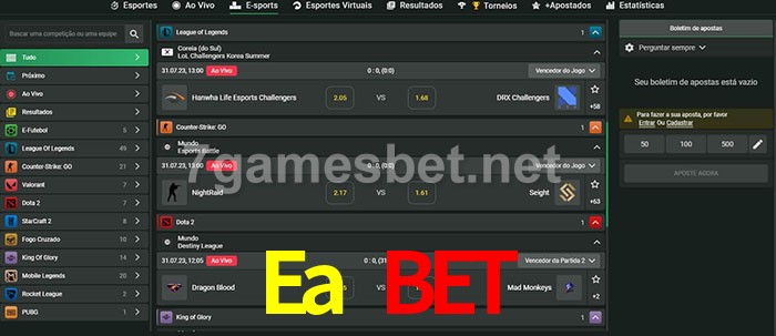 O Ea Bet oferece uma grande seleção de opções de apostas em e-sports com probabilidades competitivas